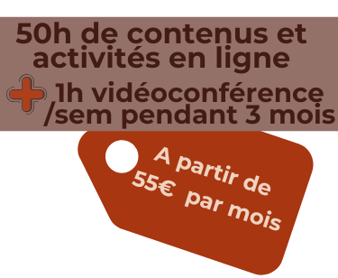 Formation 3 modules en ligne + 3 mois de vidéoconférences hebdomadaires: 495€ (paiement en 1 , 3, 5 ou 9 fois sans frais )